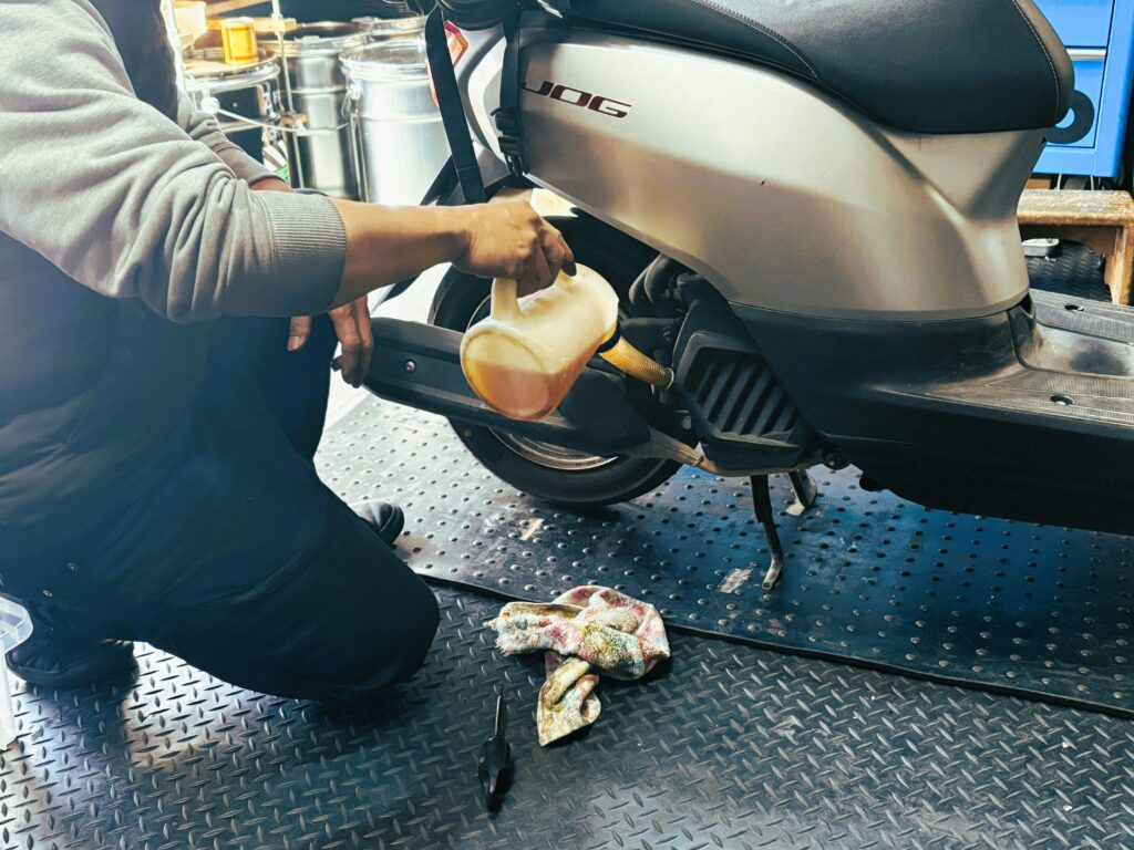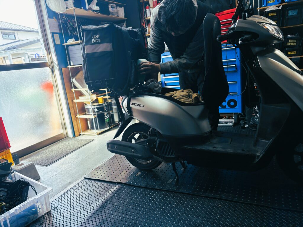 お店の状況によってはオイル交換のみで終わることもあるようですが、極力メンテナンスには気を使っているのが仕事ぶりから垣間見えますね🛠️
