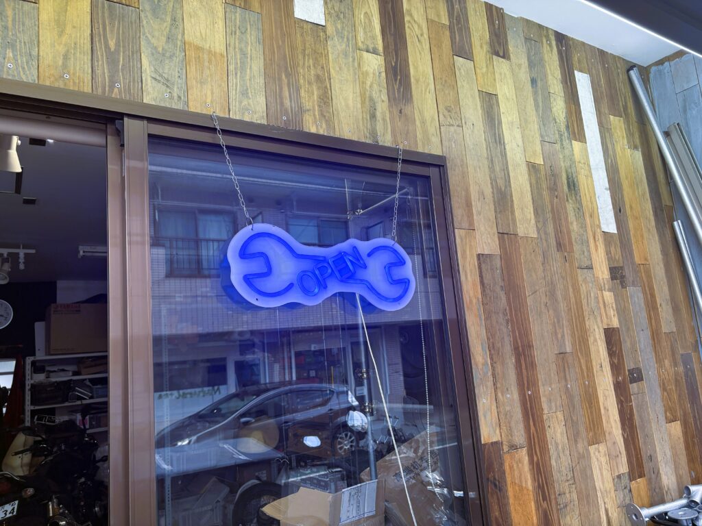 こちらが入口。オシャレなネオン看板が堂々と訪問を歓迎しています。スパナマークがカワイイですね。
