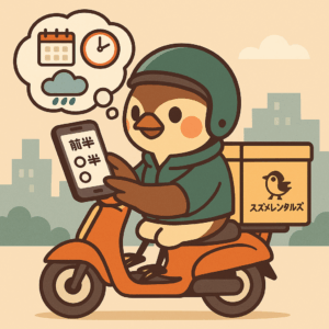 デリバリー業を始めるとき、バイクが故障中のときなどは、ぜひスズメレンタルズのレンタルバイクがおすすめです🏍️💨
