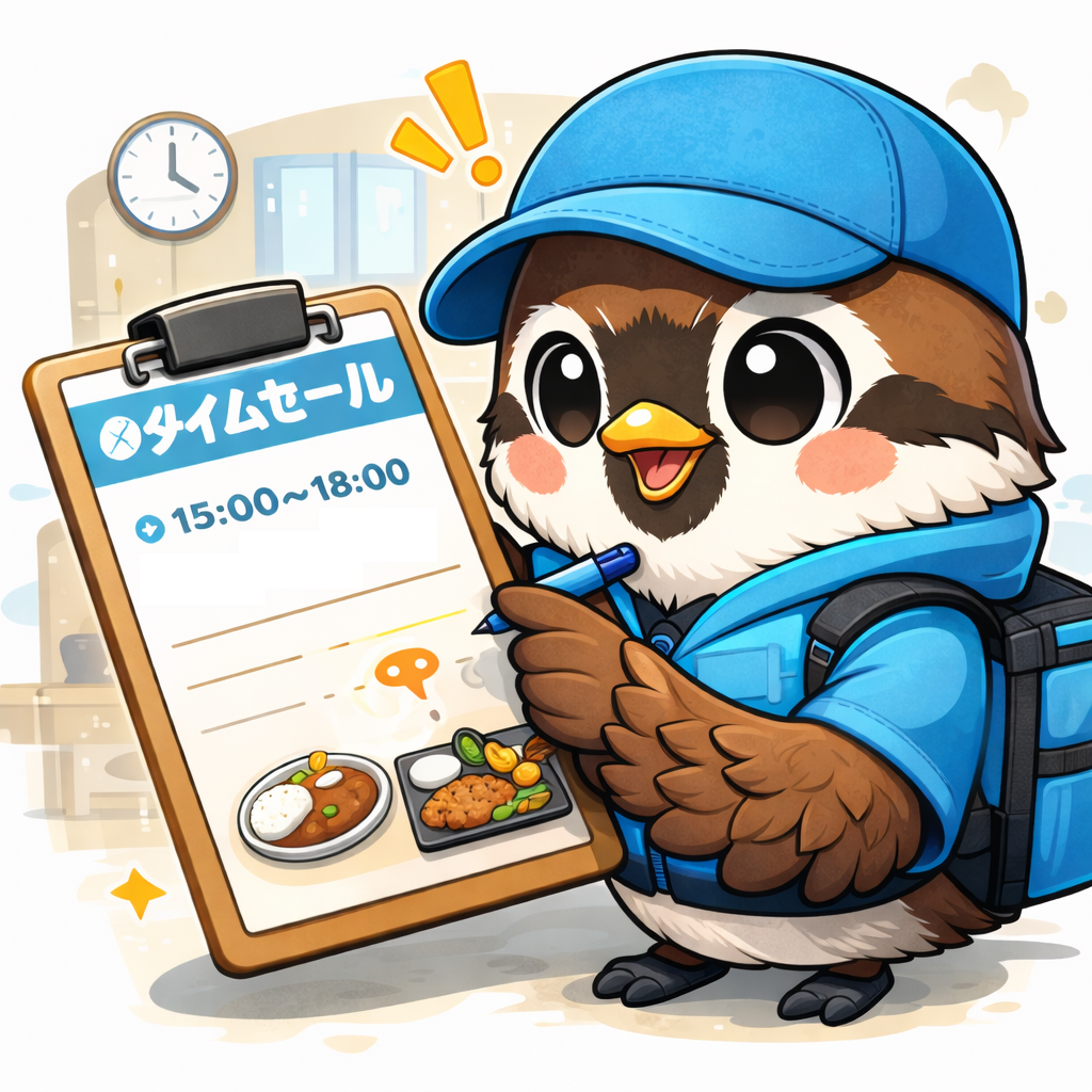 - 時間帯が限定される:タイムセールは11:30〜14:00と17:30〜20:00に限られるため、その他の時間帯は通常配達に切り替える必要がある。